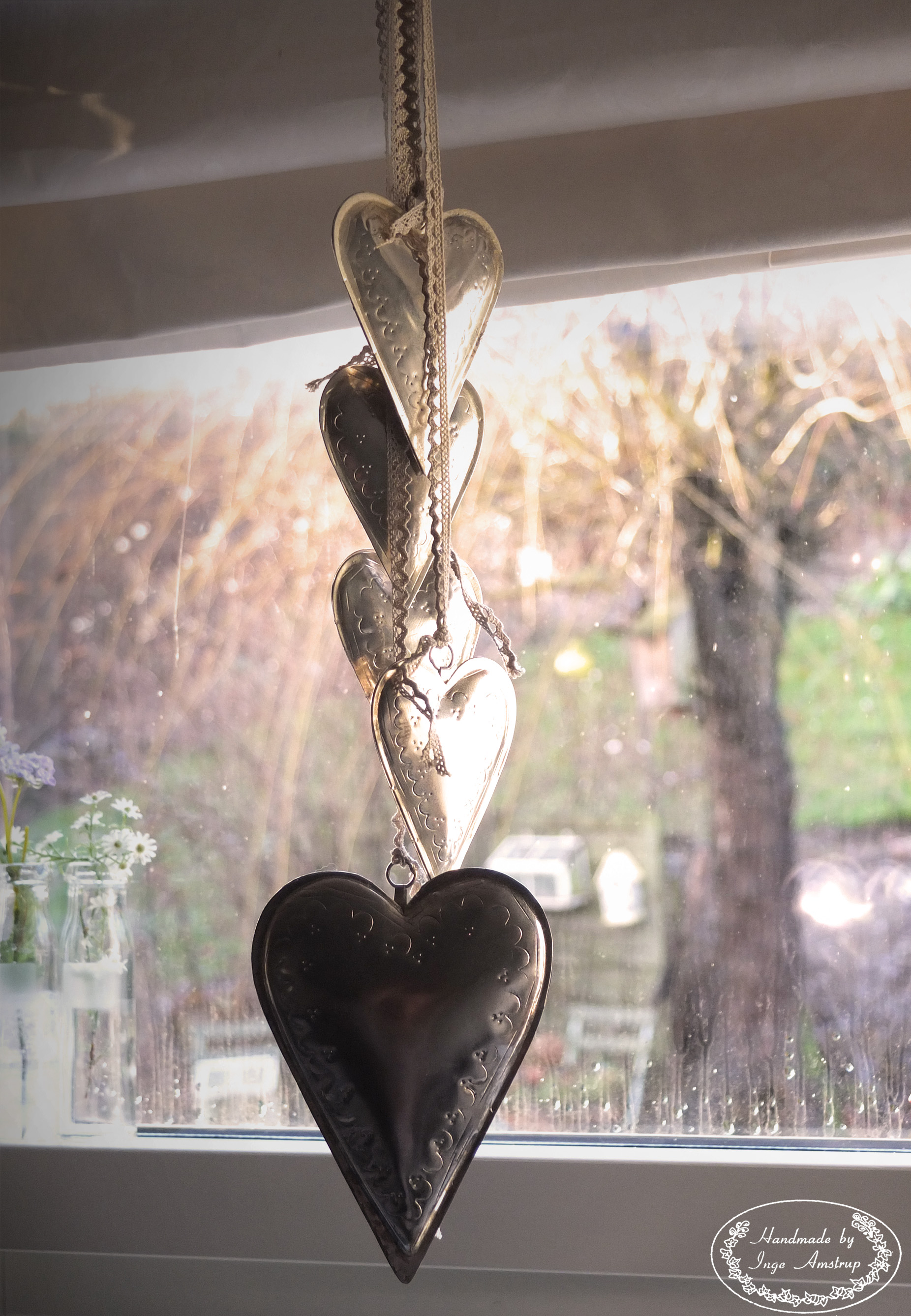 Selv på en våd dag i december pynter disse sølvhjerter i vinduet. Dem har jeg vundet sidste jul i en konkurrence på www.froeken-anker.dk.