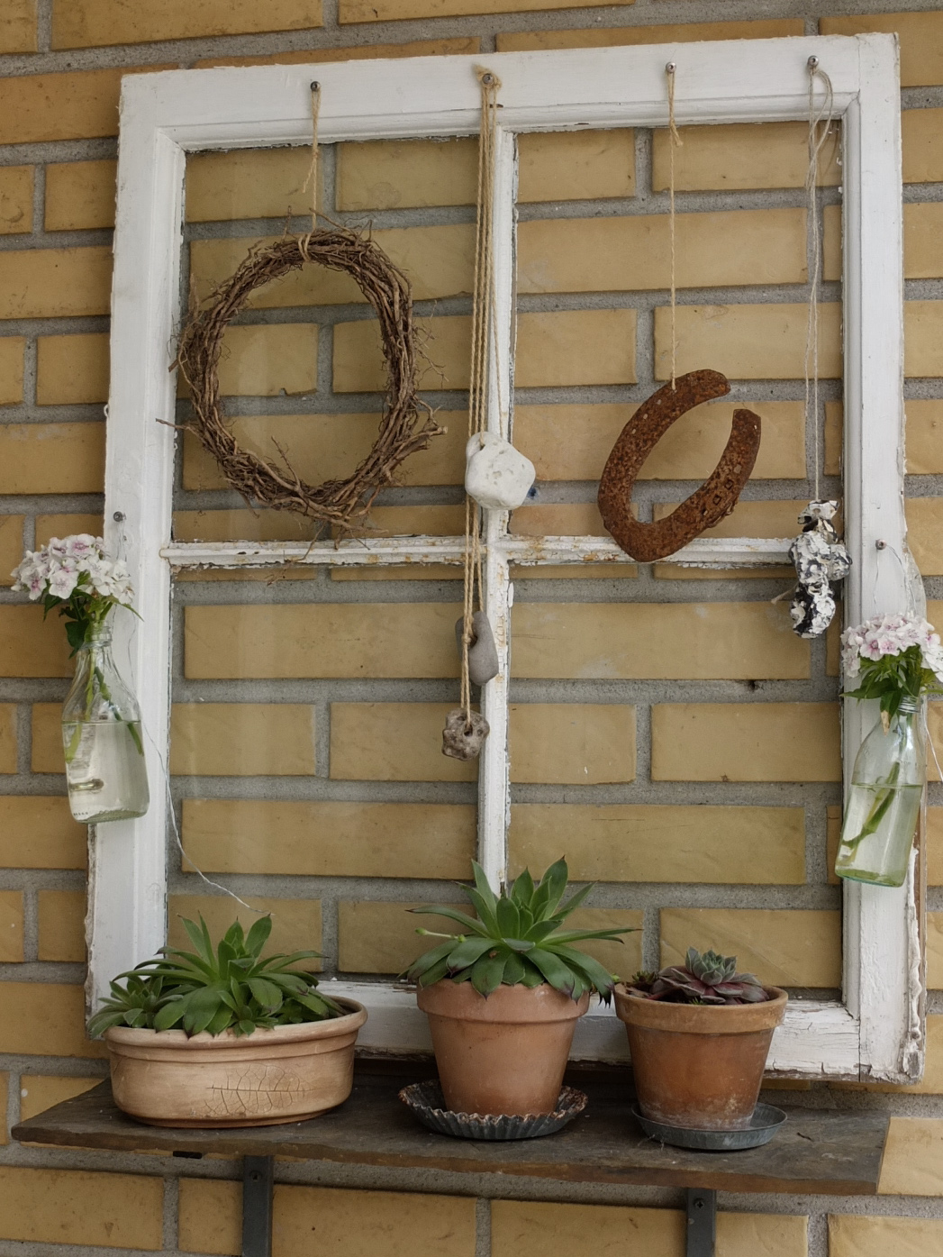 Bare som dekoration på en ordinær gul murstensvæg ude på min terrasse.