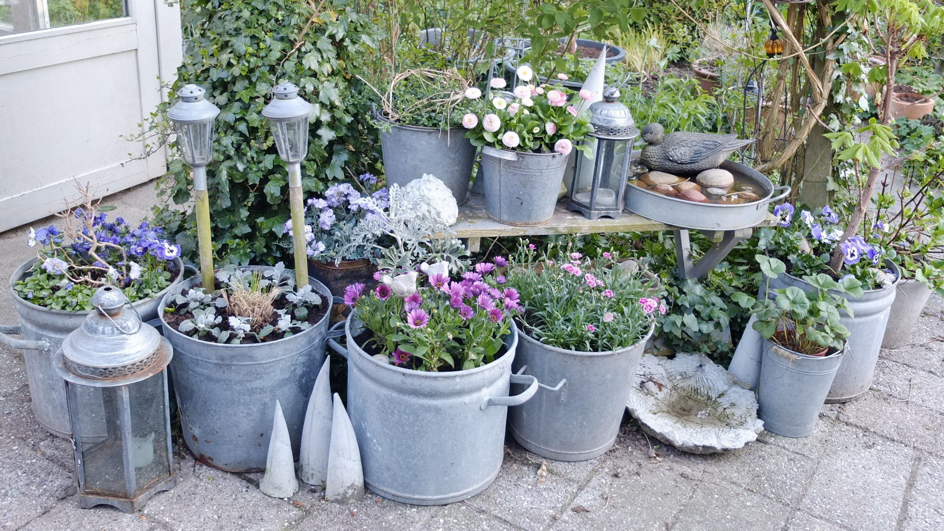 I år er mine krukker fyldt med lilla og lyserøde farver. Ja der må jo gerne komme nye spændende farver i krukkehaven, da flere af mine forårsblomster var blå og lilla hornvioler, så var jeg jo ligesom begyndt på den farveskala