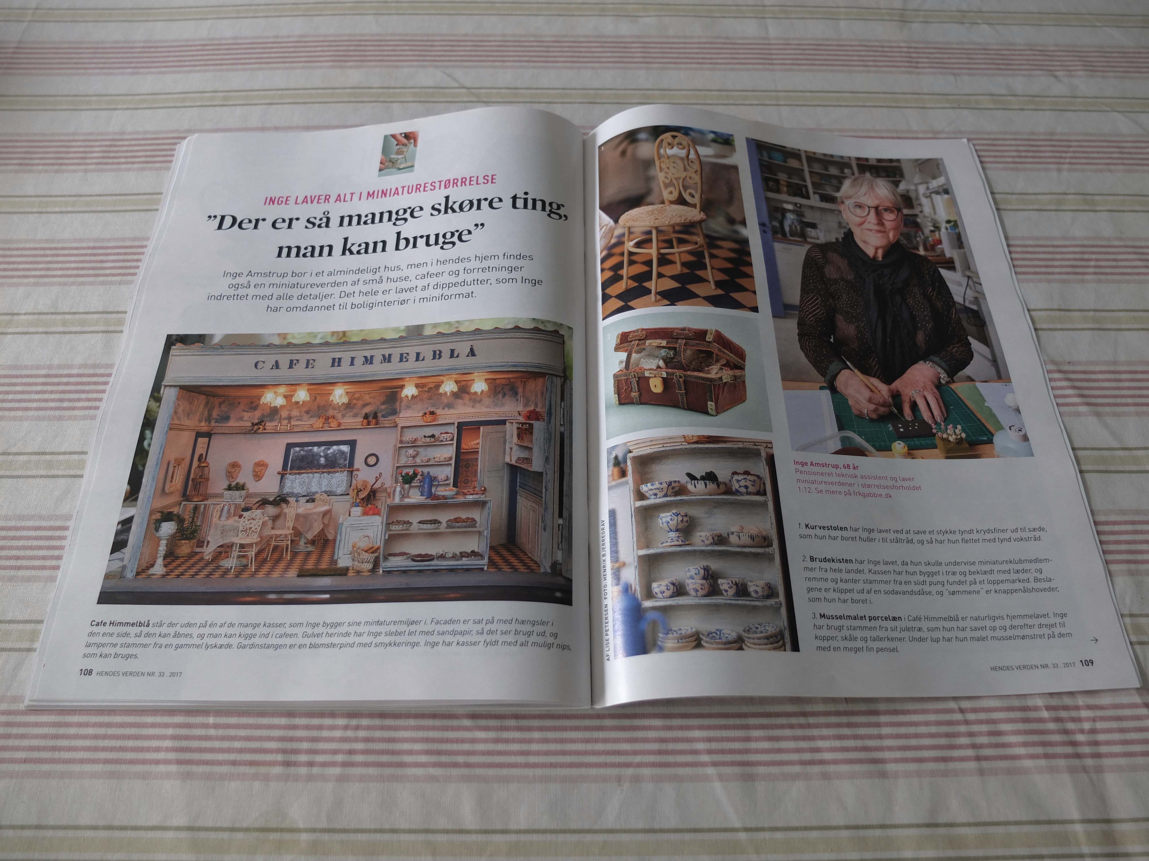 Genbrug, det går jeg jo ind for, også i min miniatureverden. En dag ringede en journalist fra Hendes Verden og spurgte, om de måtte komme og lave en artikel til deres blad om miniature. Jo selvfølgelig. Og dette er så hvad de har valgt at udsende. Det er jo fint at få lidt reklame for hobbyen, som også viser at man kan lave rigtig meget selv for billige penge.