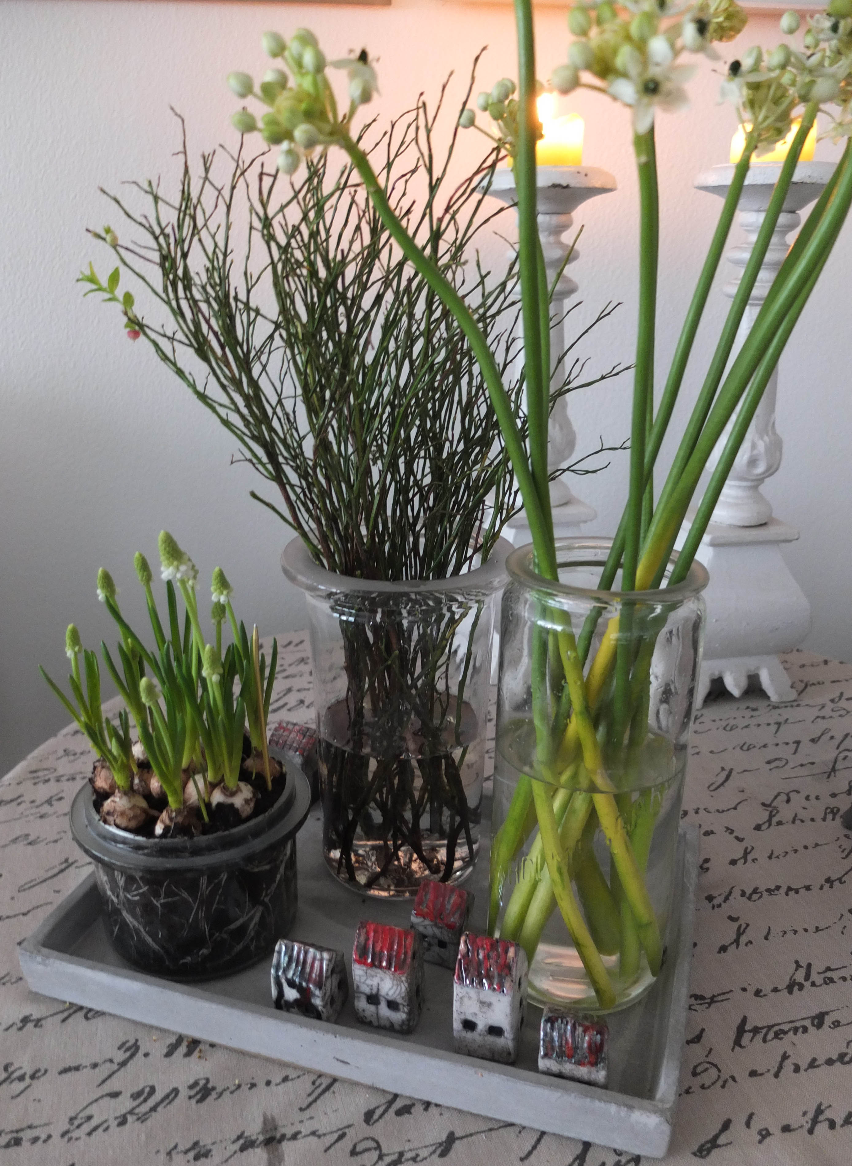 Var på genbrugsmarked “take NOW” med min datter, vi skulle lede efter tekande og noget andet til hende, men som sædvanlig fandt jeg noget helt andet, nemlig skønne gamle høje sylteglas fra Holmegård og et lille halv liters, som jeg aldrig har set før. De måtte med hjem. Jeg kan godt lide at bruge dem som vaser og stille flere i en gruppe med forskellige blomster og forårsløg.
