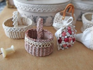 En af de ting jeg købte var vokset flettetråd, denne gang købte jeg en rulle naturfarvet 3-trådet. Damen, som solgte den, sagde at man kunne farve kurvene eller hvad man nu fletter med vandbaseret bejdse. Den forreste kurv har jeg bejdset, den bagerste ikke.