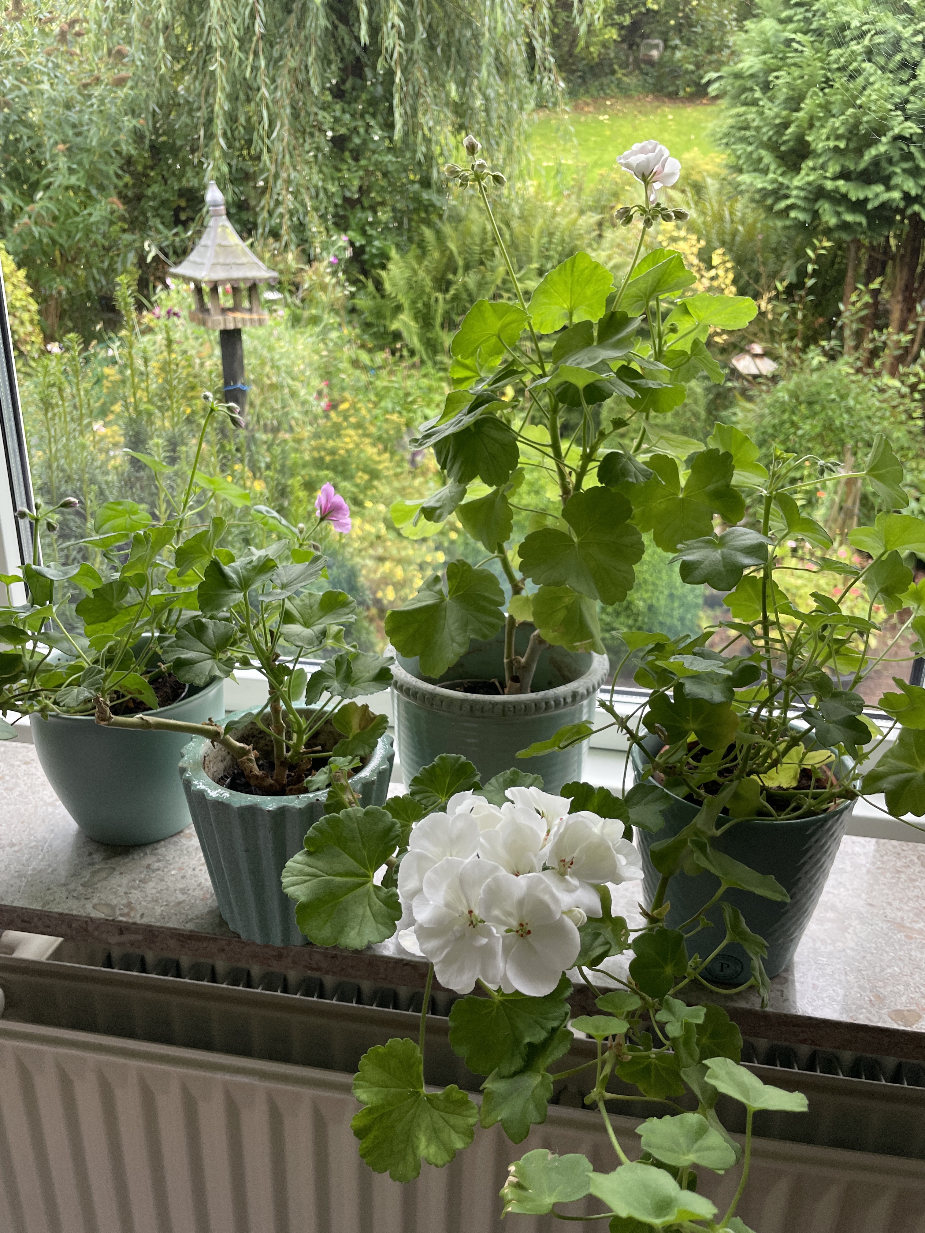 Nogle af mine pelargonier kan ikke lide regnvejr og kulde. Så hvorfor ikke have lidt fornøjelse af nogle af dem i vindueskarmen, inden de går i vinterhi i kælderen.