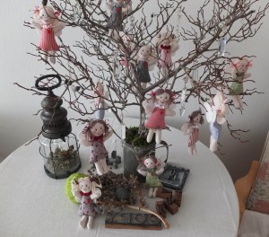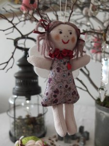 Julen nærmer sig og det er tid til så småt at pynte op derhjemme i stuen. Man kan jo starte med nogle smukke grene, det behøver jo ikke være gran eller fyr, som hurtig bliver så kedelig at se på. Jeg har siddet og hygget mig med at sy små engle af diverse stofrester. De er faktisk ret dekorative, når de bliver hængt op på de nøgne grene.
