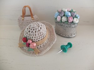Miniature hæklet hat og taske