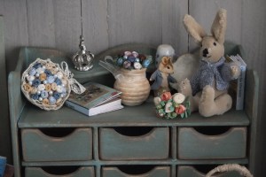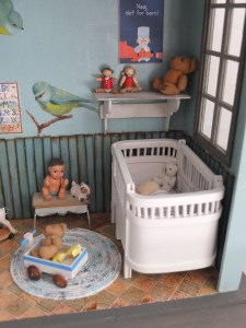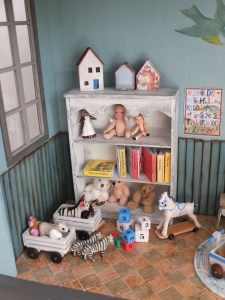 Denne gang er det bare en masse småting, som jeg har lavet, noget er lavet på højskolen og andet sådan hist og pist. For at få lidt samling på det, har jeg købt en lanterne, klippet de forreste stålpinde af, sat en plade i bagsiden og hæftet et par gardiner i siderne, øverst har jeg savet en klar plexiplade til som loft med et lille batteridrevet lysarmatur. Nu hænger lanternen i min entre, og så kikker jeg og mine gæster på den, i stedet for de små miniature ting bare ligger i nogle æsker.