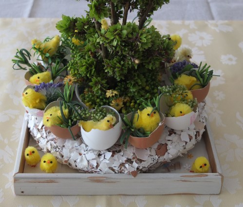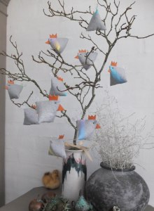 Endelig blev mine små påskekyllinger til påskebordet færdige. Jeg havde en del plusstof i gule farver liggende, fra jeg syede miniature plysbamser. Det er købt hos Bamsemuseet og super godt at sy i, da det ikke trævler, så derfor er disse små kyllinger håndsyet og vendt. Æggene er nålefiltet. Filten er helt fra jeg var i Husfliden og prøvede at lave små bamser af filt. Mine mimose grene er tørret, så ingen vand. Håber I alle får en dejlig påske uge med solskin og frisk luft til gåture efter påskefrokosten 🤗