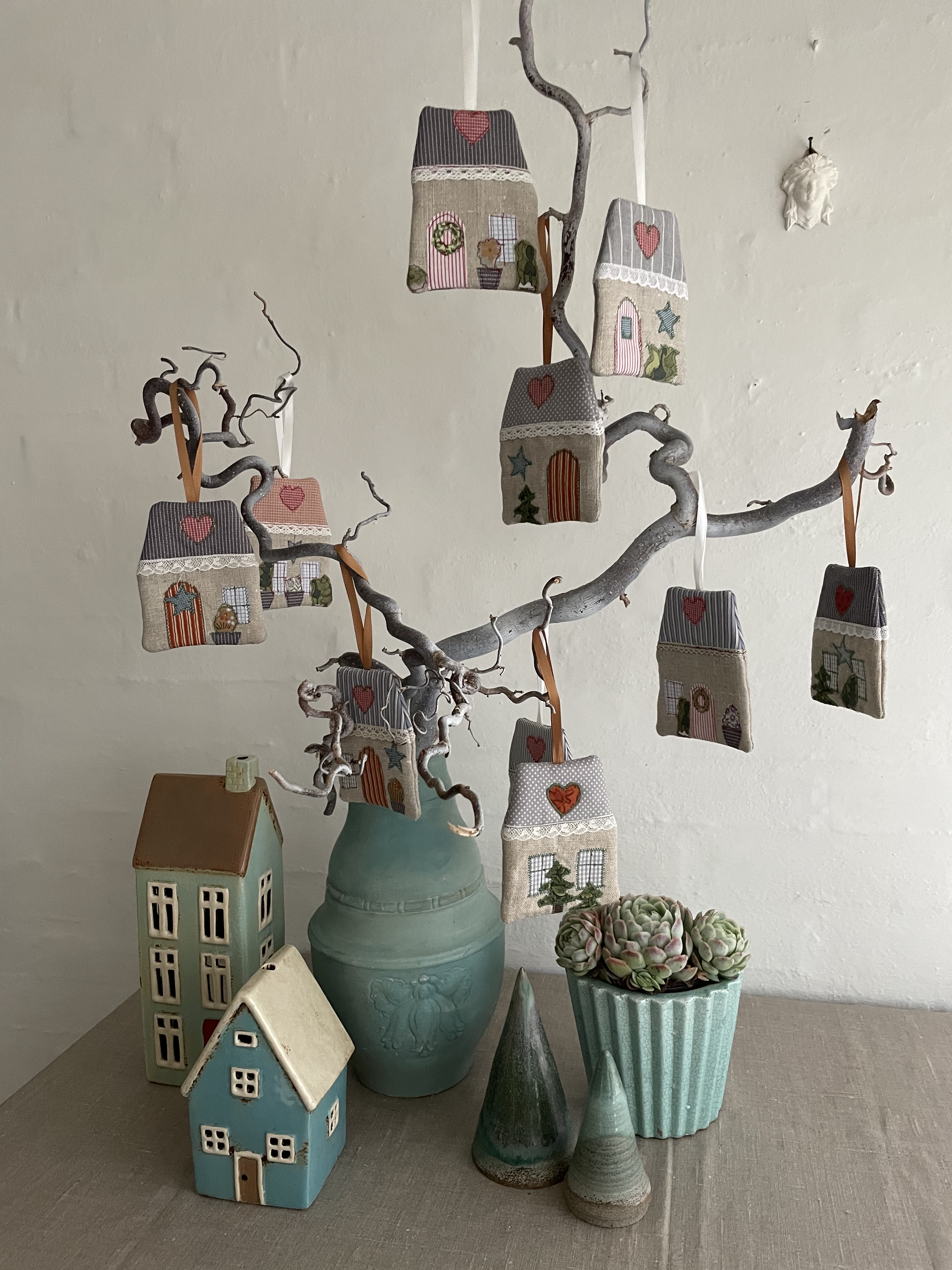 Disse små syede huse er perfekte til at hænge på en troldegren eller andre typer grene.