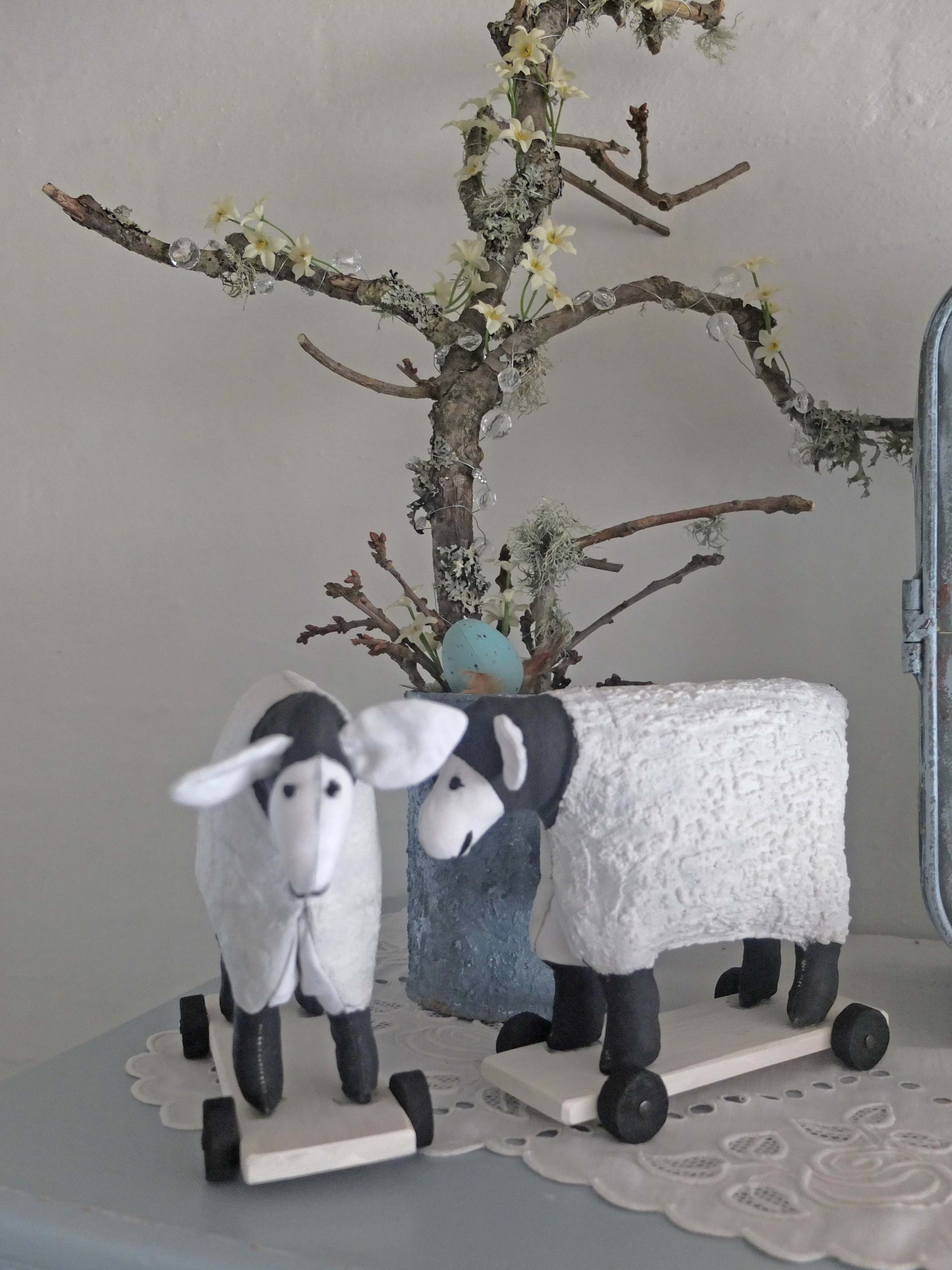 Når der nu fødes så mange nye lam hver år til påske, så må der da også være nogle påske får. Dette er mit bud på årets påske får. De er lavet med stofmaling og “puff binder”. Syet og fyldt med bomulds fiber, sat på træplade og fire små hjul for dekoration skyld.