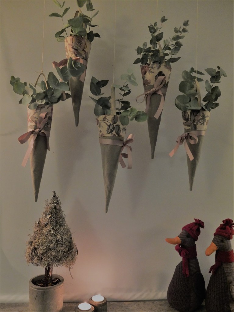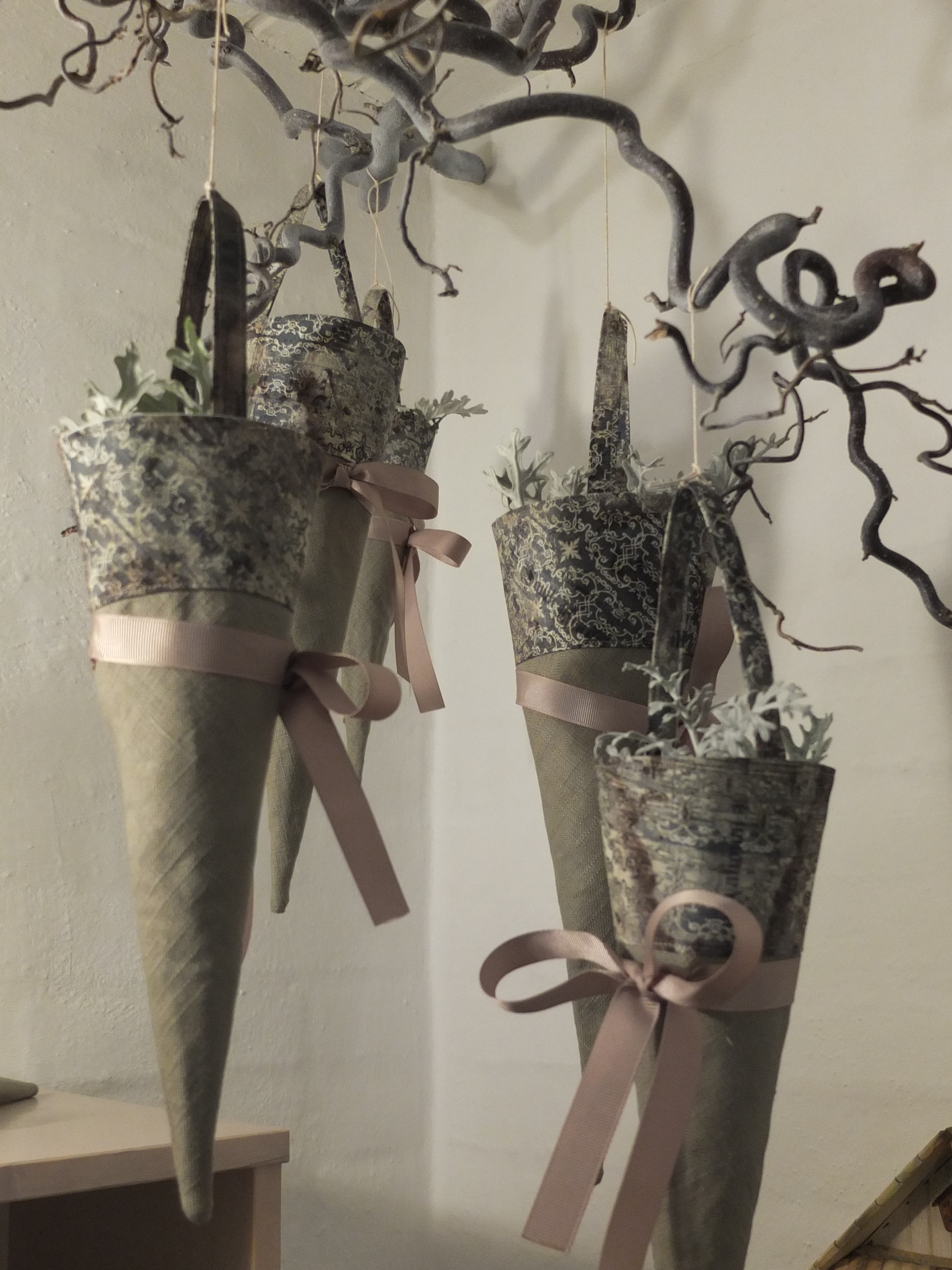 Disse svaneunger er rigtig dekorative til dette års julepynt derhjemme sammen med diverse naturmaterialer. De er syet af naturfarvet hørstof og har fine halskæder af glasperler. De er ca. 25 cm høje og har fået en pose med sand i bunden, så de står stabilt. De kan købes for kun 150 kr. pr. stk.